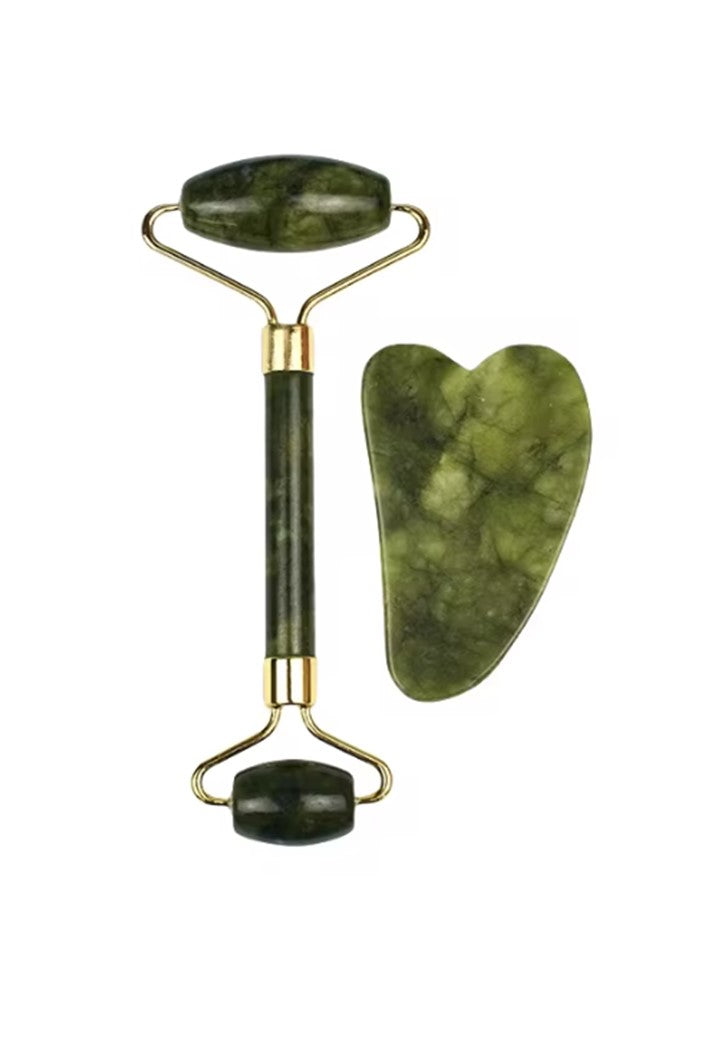 JadeGlow Roller do twarzy – naturalny zestaw do masażu jadeitem i gua sha