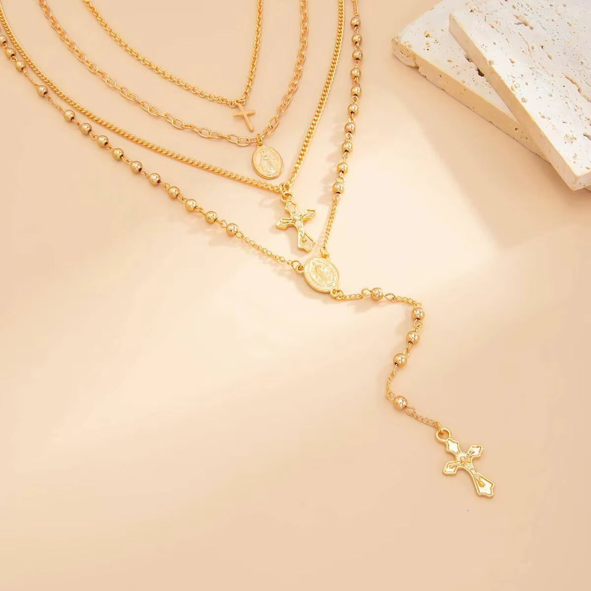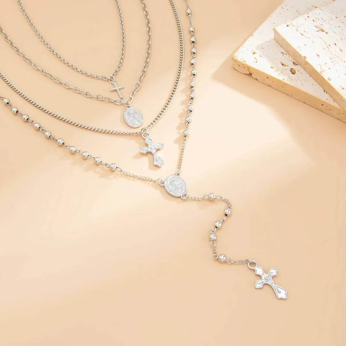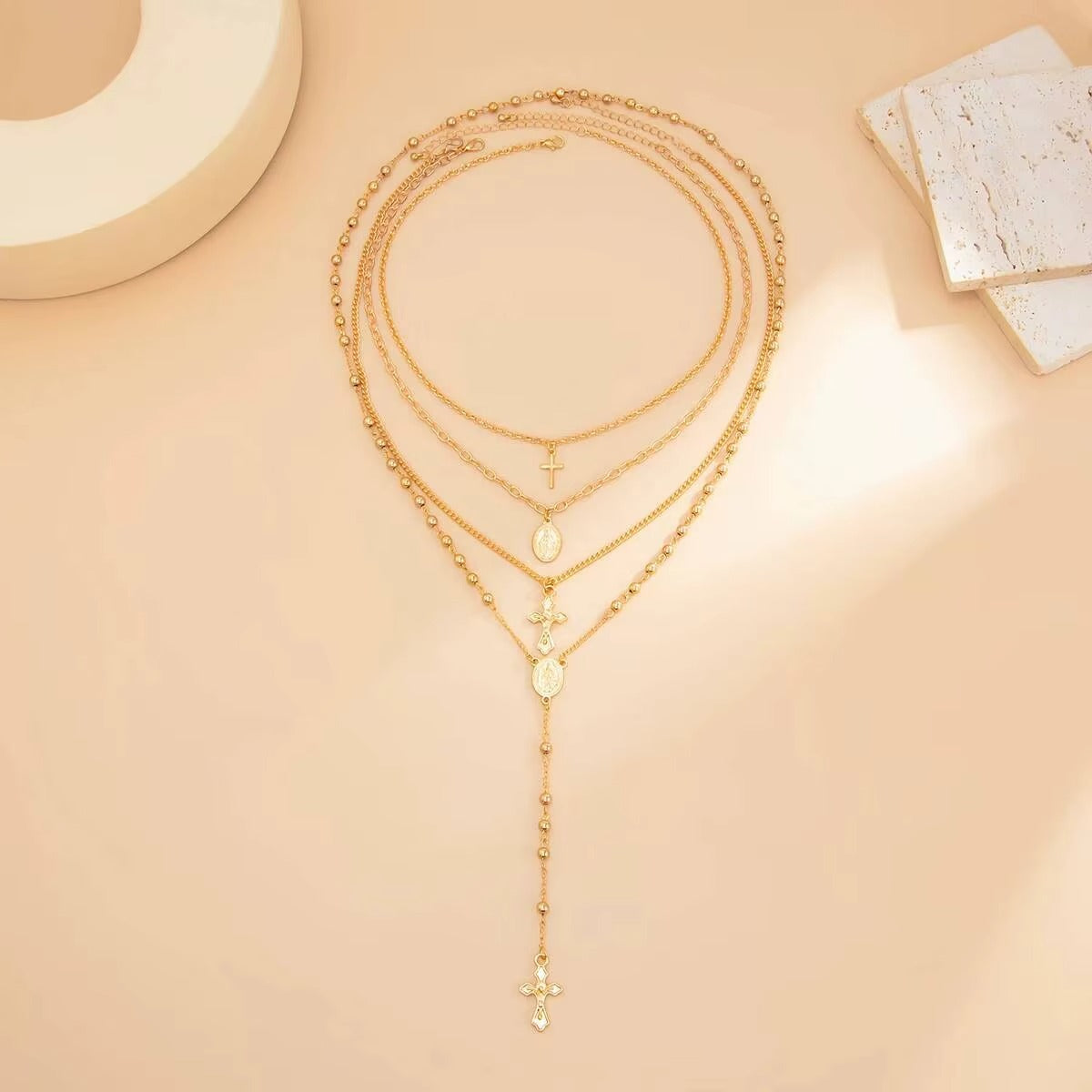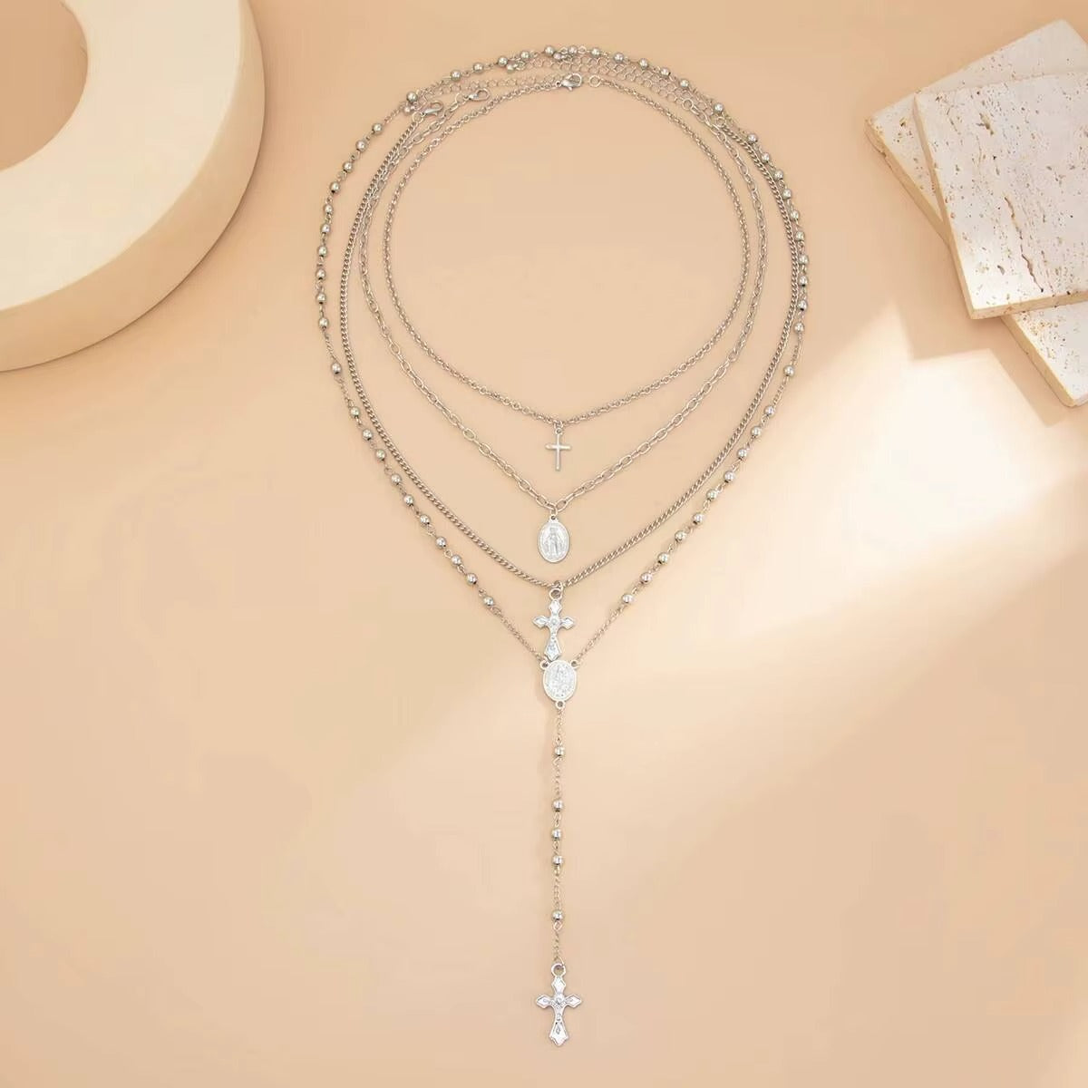 Naszyjnik z wieloma elementami i subtelnym wisiorkiem